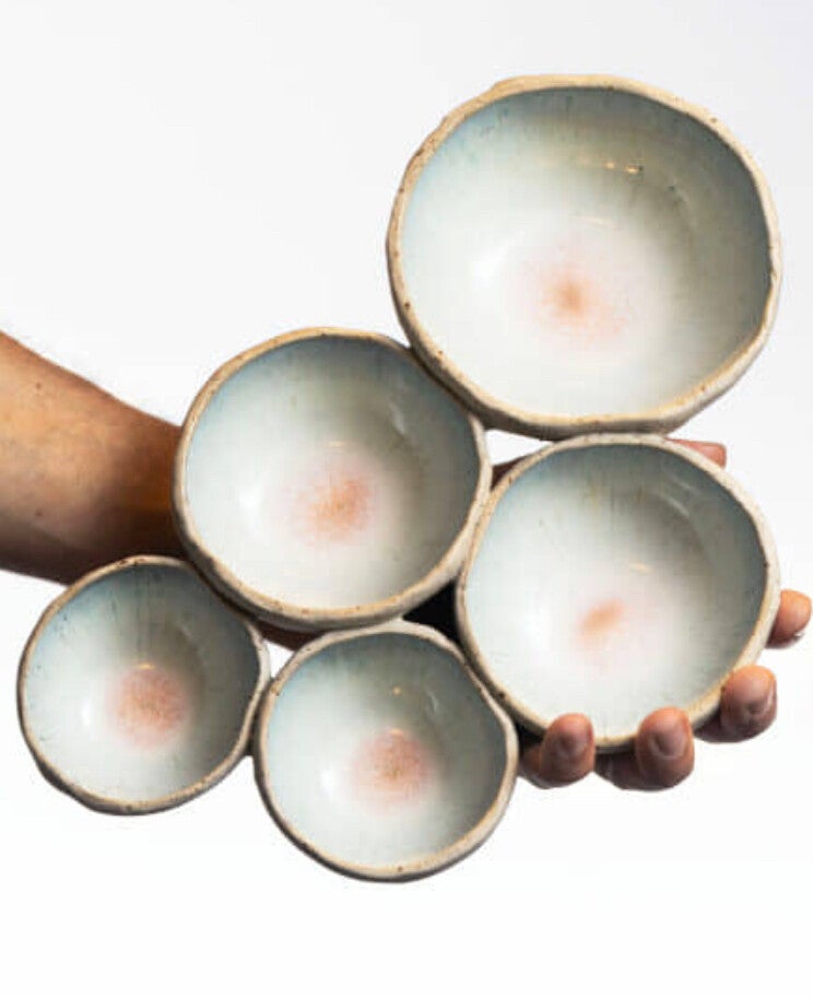 Fijn om je gasten te verwelkomen met tapas in zelf gemaakte schaaltjes.