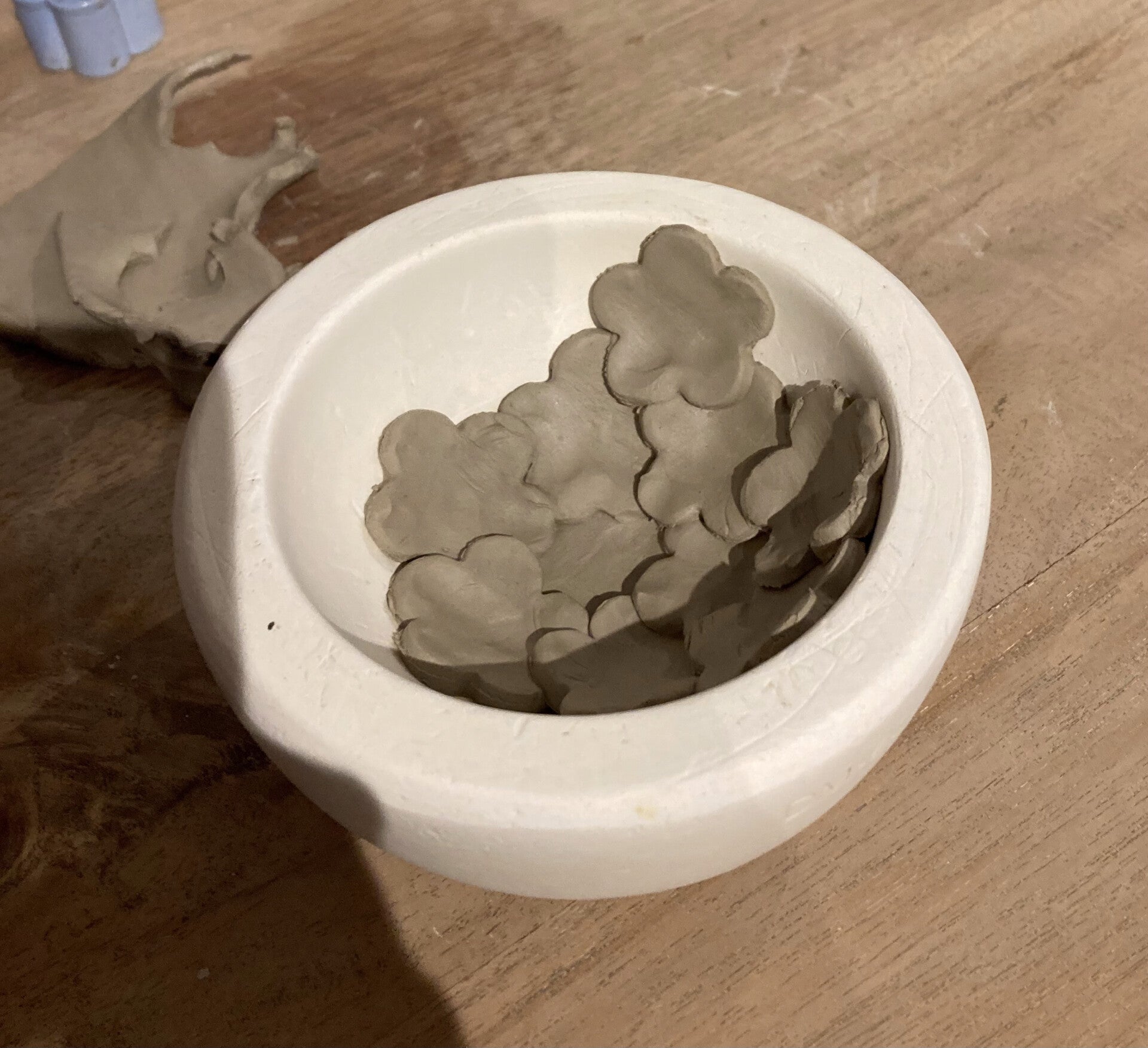 We starten rustig met een korte uitleg en nemen de tijd om de klei te voelen en de mallen te leren kennen. Daarna ga je stap voor stap aan de slag, zittend aan tafel in een ontspannen tempo. Even uit je hoofd, met je handen bezig. een klein creatief rustmoment voor jezelf.